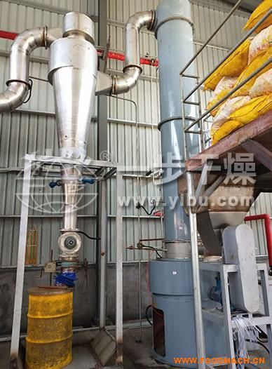 一步生產(chǎn)DG系列淀粉氣流干燥機(jī),干燥的淀粉經(jīng)旋風(fēng)分離器、關(guān)風(fēng)器排出,廢氣經(jīng)風(fēng)機(jī)排入大氣。