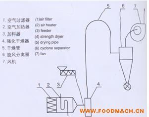廠家供應(yīng)土豆粉專用氣流干燥機(jī),能把濕的、甚至結(jié)塊的物料解碎,直至分散,在分散過程中同時(shí)攪拌、混合、然后物料和熱氣流平...