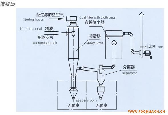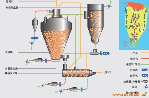 廠家供應(yīng)麥芽糊精頂出風(fēng)壓力噴霧干燥機(jī),在顆粒進(jìn)去流化床的同時(shí),氣流反向向上運(yùn)行,從干燥塔頂部被排出。