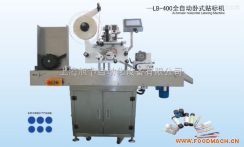 LB-400小圓瓶貼標(biāo)機主要適用于不可立式輸送的圓形瓶、管、水針劑、筆桿、錐度圓管等圓柱體貼標(biāo)。