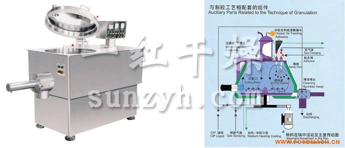LZY離心造粒包衣機(jī)原理此型設(shè)備是在旋轉(zhuǎn)床基礎(chǔ)上開發(fā)出來的新型設(shè)備,帶有自動(dòng)粉末噴灑和包衣液自動(dòng)計(jì)量裝置。