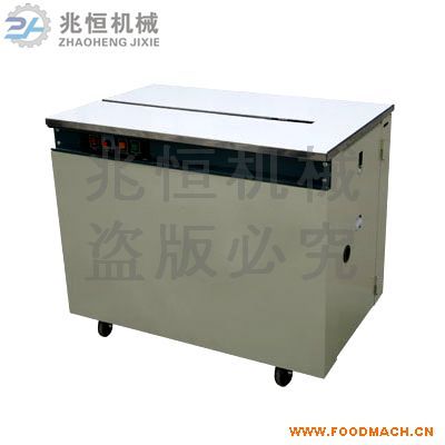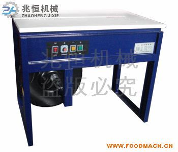 本打包機(jī)為半自動(dòng)捆扎機(jī),在插入包裝帶后能自動(dòng)完成聚帶、熱合、切斷、出帶的捆扎過程,且能自動(dòng)停機(jī)。