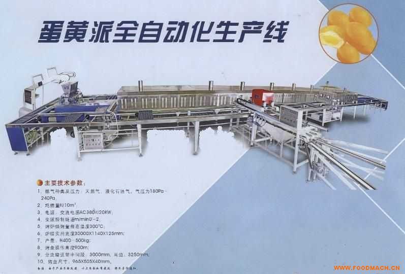 蛋黃派生產(chǎn)線--包括打蛋機、成型機、隧道烤箱、柱心機、紫紅外線殺菌線。