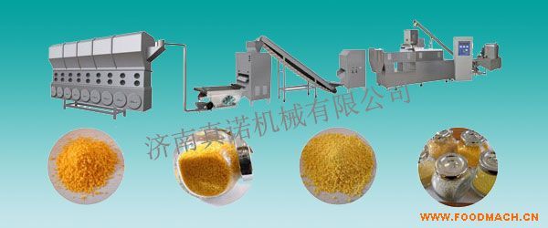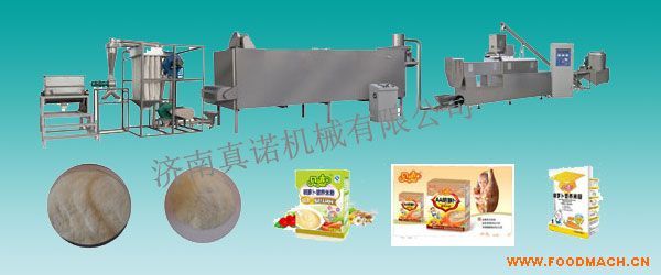 該生產(chǎn)線(xiàn)以大米、玉米、豆類(lèi)等各種谷物為原料,經(jīng)擠壓膨化、干燥、粉碎和混合,可生產(chǎn)各種營(yíng)養(yǎng)粉,如嬰兒米粉、芝麻糊、和豆...