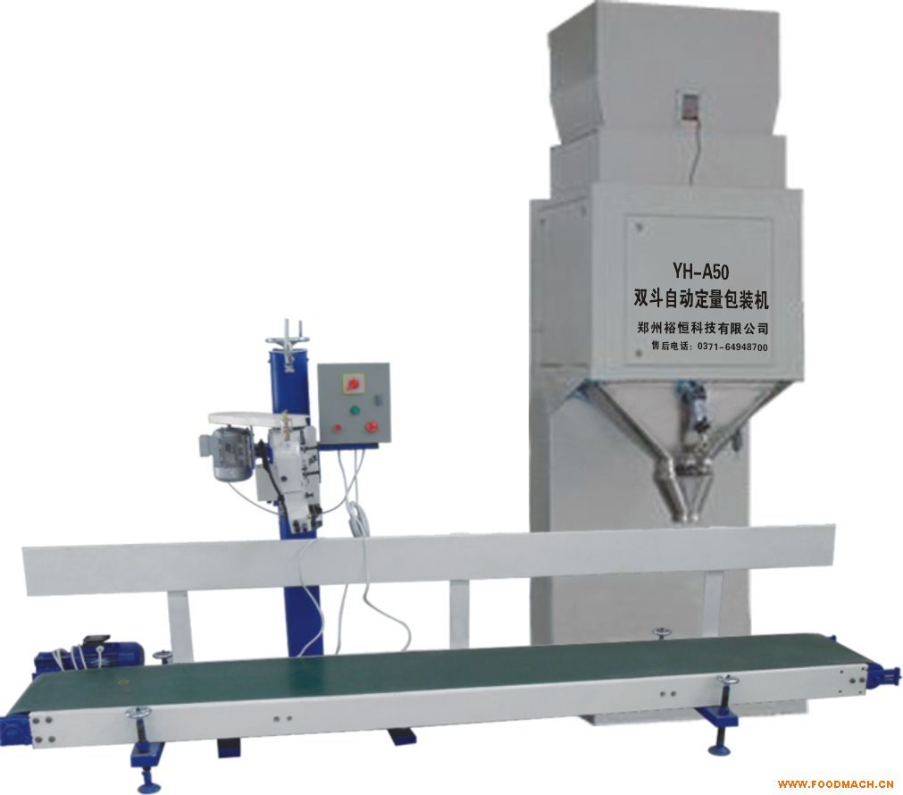 YH-B50型雙斗自動定量包裝機該型號為智能型稱量式自動定量包裝機,雙稱、微電腦控制;適用于味精、雞精、白糖、種子、農(nóng)藥、...