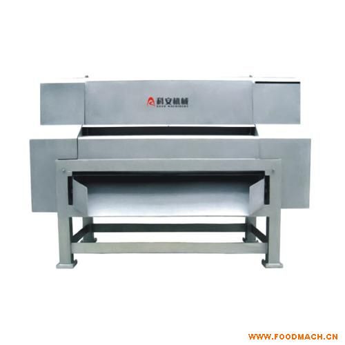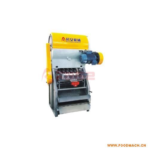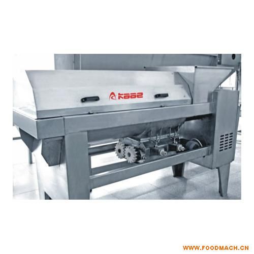 核果類的水果通過上道工序送至去核機的進料口進入橡膠輥與齒輪輥之間,通過壓板的垂直往復(fù)運動,水果被兩輥擠壓破碎,從而實...