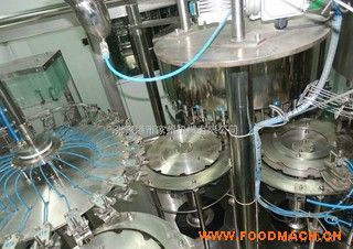 風(fēng)送進(jìn)瓶、自動沖洗、灌裝帶顆粒飲料、灌滿飲料、封口。設(shè)備內(nèi)全懸掛一次完成,使瓶內(nèi)顆粒均勻,灌裝不堵閥,并進(jìn)行瓶口外沖...