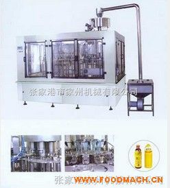 RCGF系列熱灌裝、常溫灌裝三合一體機(jī)--適用于果汁飲料、茶飲料等其他需高溫?zé)峁嘌b飲料的生產(chǎn),更換部分變更亦可適用于常溫灌裝。
