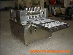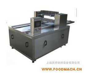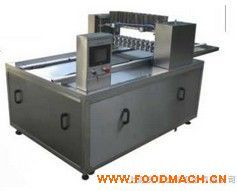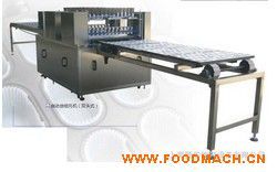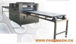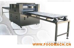 蛋糕脫模機(jī)是依次將烤盤凹槽內(nèi)的蛋糕吸附出來(lái)并轉(zhuǎn)移到包裝線的輸送帶上,每次吸附以及轉(zhuǎn)移只需12秒,每次可吸200只蛋糕。