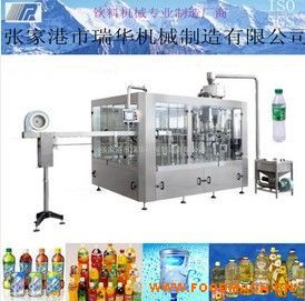 常壓三合一灌裝機(jī)組:本系列設(shè)備主要用于聚脂瓶裝各種礦泉水、純凈水等不含氣飲料的生產(chǎn),在一機(jī)上實現(xiàn)沖瓶、灌裝、封蓋。