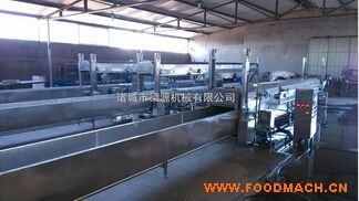 肉丸成型蒸煮流水線由四大部分組成,即成型部分、蒸煮部分、冷卻部分、傳動系統(tǒng)等。成型槽與蒸煮槽的水經(jīng)兩槽內(nèi)蒸汽管道加熱...