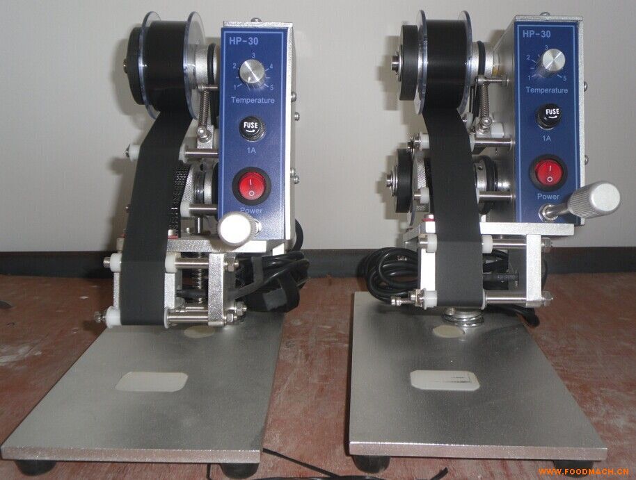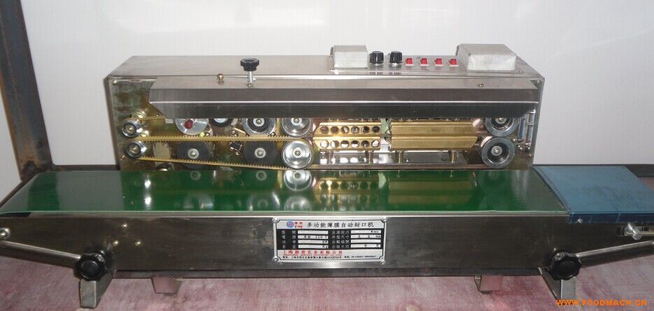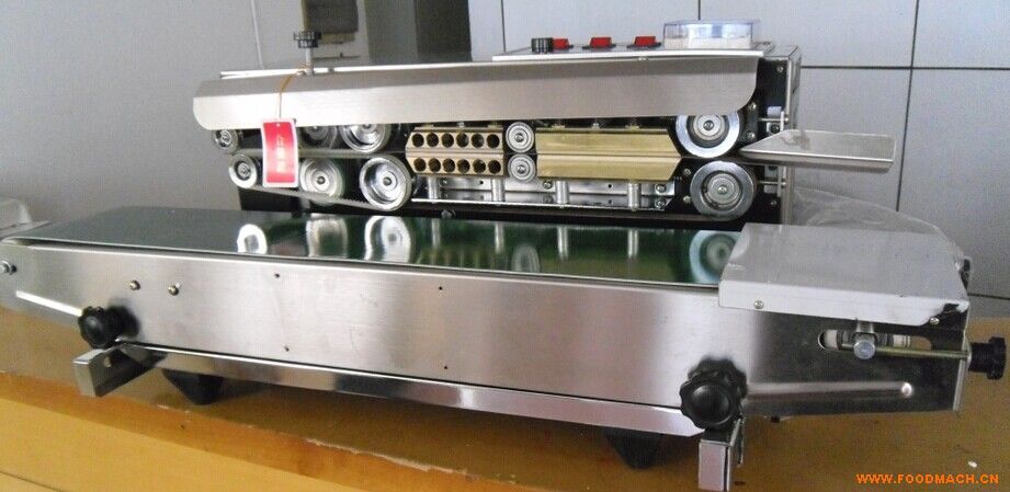 (墨輪印字)連續(xù)封口機(jī)在封口的同時打印生產(chǎn)日期等文字;字跡采用凸式和有色二種。且字跡清晰,顏色可選,且不易被擦除和更改;...