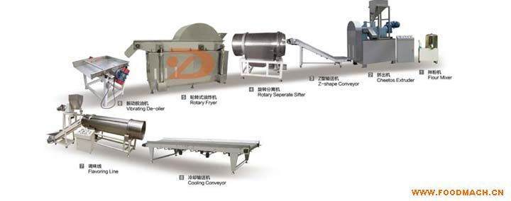 奇多、粟米條生產(chǎn)線是一種特殊的擠壓型小食品,具有極脆的口感。采取玉米碴為主要原料,通過(guò)拌粉機(jī)混合后,在擠壓機(jī)轉(zhuǎn)盤(pán)的擠...