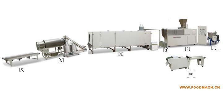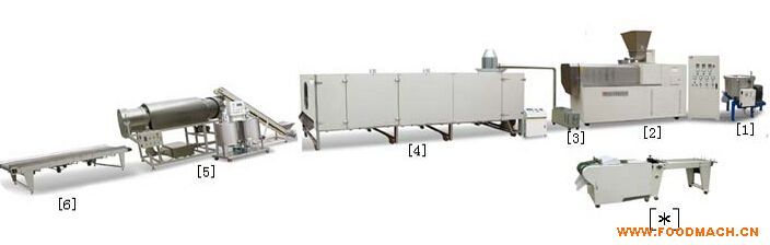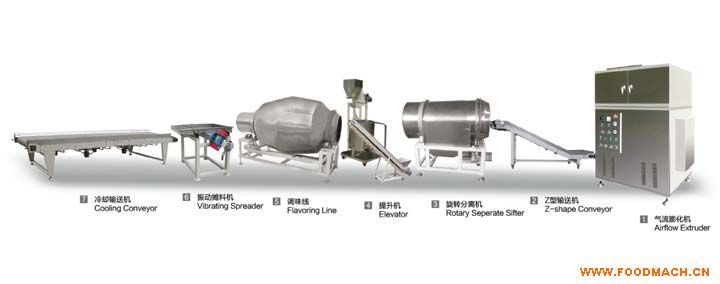 直接膨化生產(chǎn)線,是以谷類(lèi)、薯類(lèi)或豆類(lèi)等為主要原料,經(jīng)擠壓機(jī)擠壓,在高溫、高壓條件下,利用機(jī)內(nèi)外的壓力差,使產(chǎn)品膨化而...