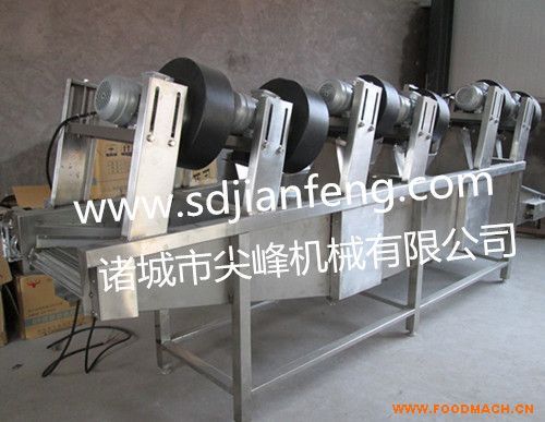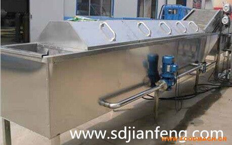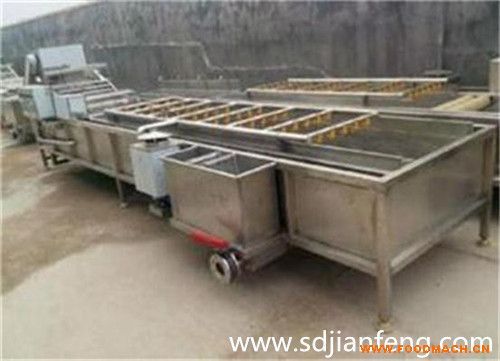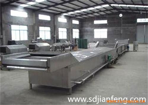 果蔬殺菌漂燙機(jī)在食品、飲料、制藥等行業(yè)中,要求對(duì)一些包裝完畢的產(chǎn)品進(jìn)行水浴滅菌。被包裝好的產(chǎn)品放在可調(diào)速的不銹鋼網(wǎng)帶...