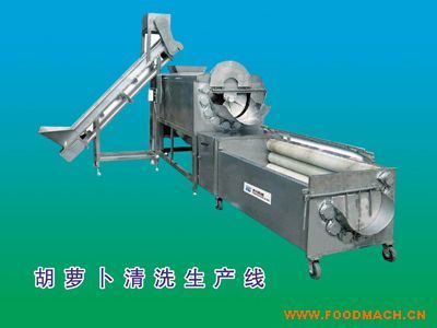 胡蘿卜清洗生產(chǎn)線.設(shè)備中設(shè)有氣泡發(fā)生裝置,使物料呈翻滾狀態(tài),去除產(chǎn)品表面農(nóng)殘的功效,同時(shí)可加入適量的藥劑,進(jìn)行消毒固色...