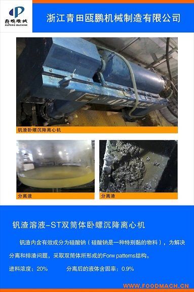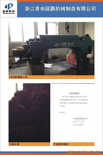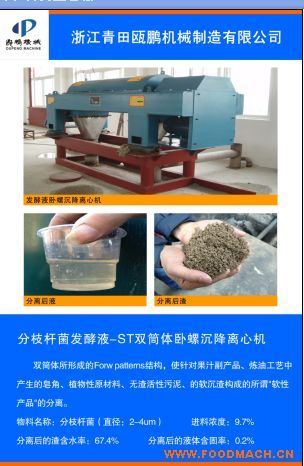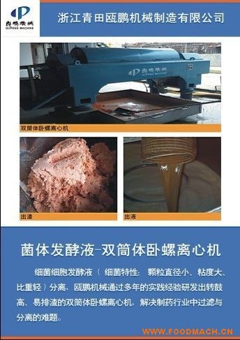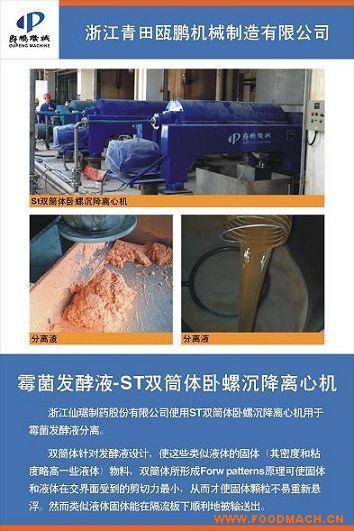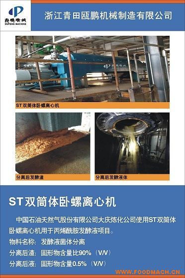 浙江青田甌鵬機械制造有限公司生產(chǎn)的ST臥螺離心機用于浙江仙琚制藥發(fā)酵液自有甌鵬機械ST雙筒體臥螺沉降離心機使用這種軟性體...