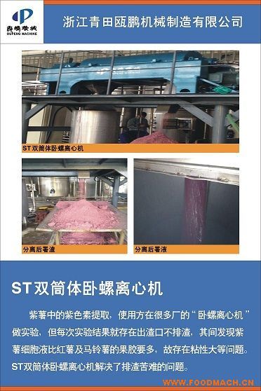 ST雙筒體臥螺離機用于紫薯蛋白分離紫薯中的紫色素提取,使用方在很多廠的“臥螺離心機"做實驗,但每次實驗結(jié)果就出現(xiàn)出渣口不...
