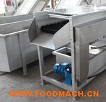 SXJ型水浴式鼓泡清洗機物料在網帶輸送經過水中緩慢地淋洗,出料端設有噴淋、選果,特別適合桑葚、草莓、黑莓等柔軟易損壞的水...