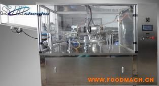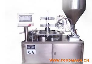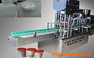 杯盒灌裝封口機(jī)采用不銹鋼制造,適用于各種形狀的塑料杯盒的液體灌裝封口。