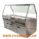 高清玻璃展示不銹鋼沙拉柜采用不銹鋼做為主體材料,黑金沙大理石為臺(tái)面,高雅大氣;☆存放食物的池子全部采用不銹鋼,衛(wèi)生、...