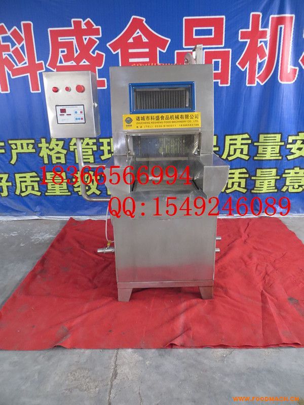 凍肉切塊機(jī)可直接斬切-18℃、-24℃標(biāo)準(zhǔn)冷凍雞、無(wú)骨凍肉的設(shè)備,該機(jī)設(shè)計(jì)合理,刀具高頻淬火,切口無(wú)撕裂,塊狀整齊。
