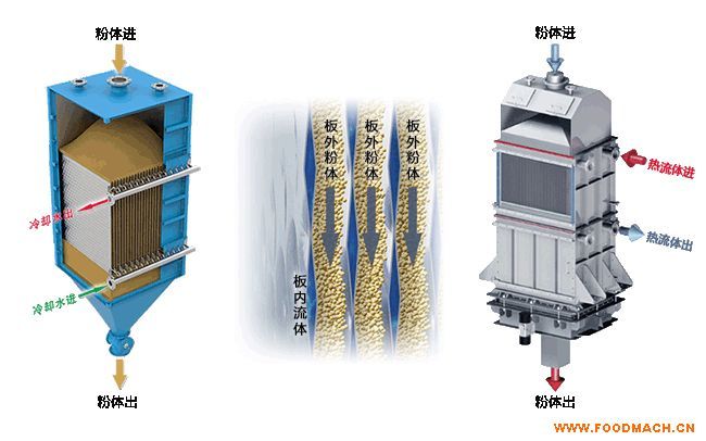 立式傳熱板組設(shè)計(jì)結(jié)構(gòu),無(wú)需外部動(dòng)力,物料直接在重力作用下緩慢通過(guò)板間通道,循環(huán)冷卻水從傳熱板內(nèi)流過(guò),密相輸送下料裝置...