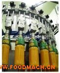 四合一果汁飲料灌裝生產(chǎn)線將沖洗、灌裝、封蓋、壓蓋四功能組合在一個機(jī)體上,全過程實(shí)現(xiàn)自動化,適用于耐高溫聚脂瓶灌裝果汁...