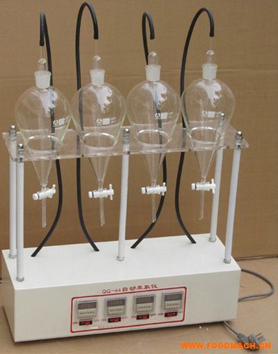 XS-44型四聯(lián)萃取儀。一次可萃取四個(gè)樣品,四套萃取瓶,帶氣量調(diào)節(jié)閥(流量大小可調(diào)),帶定時(shí)器(萃取時(shí)間任意設(shè)定)。