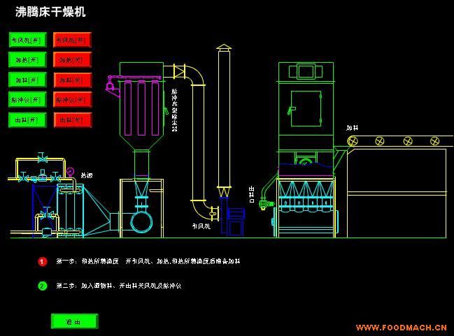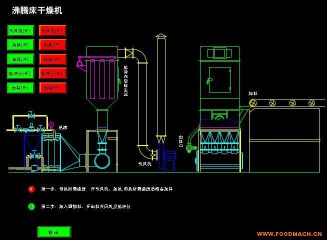 玉米胚芽沸騰干燥機廠家供應(yīng),廢氣由沸騰床頂部排出經(jīng)旋風(fēng)除塵器組和布袋除塵器回收固體粉料后排空。