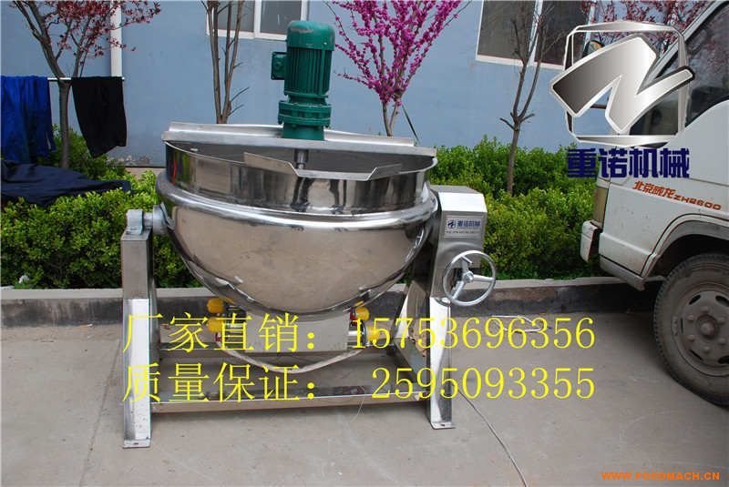鍋體為一次沖壓成型的半球形不銹鋼鍋體,采用蒸汽、液化氣、然氣等加熱形式,攪拌方式采用特殊的傾斜式傳動(dòng)