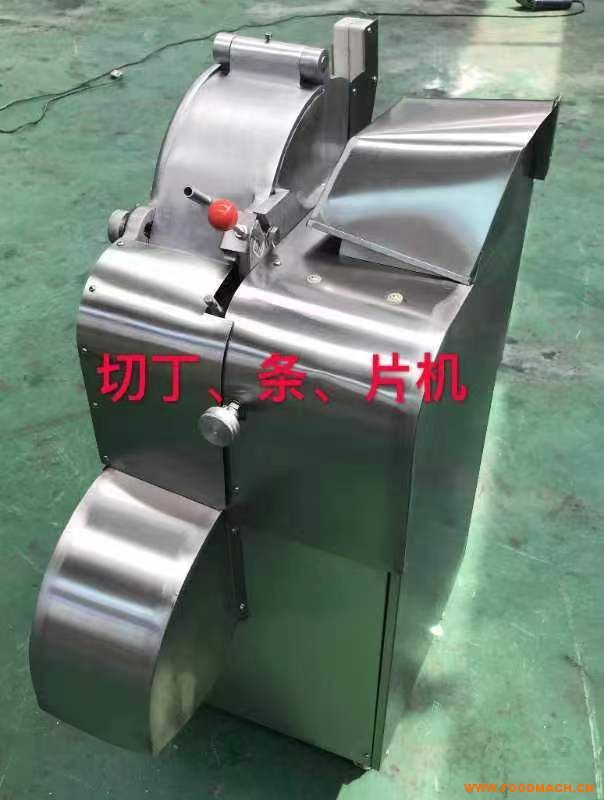 不銹鋼肉類切丁機,鮮肉和半解凍肉都能加工成3-100mm長的片,丁,條,絲等形狀,切割尺寸可調(diào)。