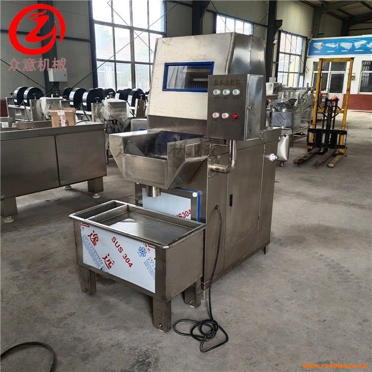 鹽水注射機性能穩(wěn)定可靠性、使用好、功能多、304不銹鋼制作,是通過機械裝置把腌制劑通過注射針注射進產(chǎn)品中,技術(shù)含量、故障...