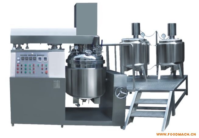 本機(jī)組適用于化妝品廠、藥廠的膏、霜類產(chǎn)品的生產(chǎn),尤其對基質(zhì)粘度大,固料固料含量比較高的物料配制乳化更顯功效