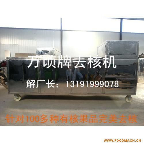 設(shè)備名稱:萬(wàn)頃牌青棗核肉分離機(jī)處理能力:600公斤/小時(shí) 果徑范圍:10-40(mm) 單機(jī)重量:300KG 外形尺寸:2500*1100*1100(mm) 工作電壓:380V 功率:1.5KW生產(chǎn)廠家:河北滄州萬(wàn)頃設(shè)備機(jī)械有限公司解廠長(zhǎng)電話:13191999078 電話:0317-5810182QQ:1390232985設(shè)備特點(diǎn): 萬(wàn)頃牌青棗核肉分離機(jī)在工作時(shí),主動(dòng)輪通過(guò)曲軸、連桿與帶有若干沖針的機(jī)頭活動(dòng)聯(lián)結(jié),沖針由半部分的沖核針與半部分的沖青棗針組成,沖針下方是間歇式旋轉(zhuǎn)盤,旋轉(zhuǎn)盤上設(shè)有若干隔離區(qū),隔離區(qū)上設(shè)有青棗定位孔,主動(dòng)輪由傳動(dòng)裝置分別聯(lián)接旋轉(zhuǎn)盤下方的轉(zhuǎn)盤軸以及料斗下方的定量給青棗總成,在旋轉(zhuǎn)盤下方對(duì)應(yīng)于機(jī)頭位置設(shè)有半部分的漏核區(qū)和半部分的漏棗區(qū),與之相對(duì)應(yīng)設(shè)有青棗核傳送帶和紅棗傳送帶。