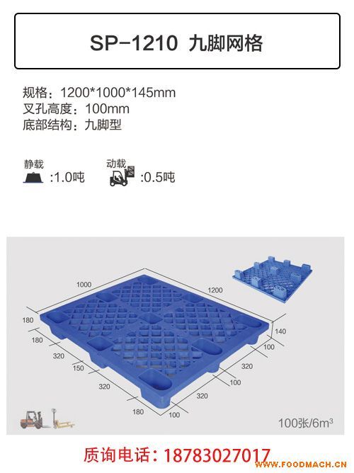 - 產(chǎn)品名稱:出售貴州息烽塑料托盤,1210九腳網(wǎng)輕