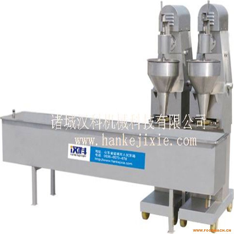 6、肉丸流水線:由成型、蒸煮、冷卻、傳動系統(tǒng)、變頻控制五大部分組成。成型槽和蒸煮槽的水經(jīng)槽內(nèi)蒸汽管加熱,水溫有高溫高壓閥通過調(diào)節(jié)蒸汽流量控制,達到成型槽的水溫越85℃,蒸煮槽水溫95℃左右。成型槽內(nèi)的水通過熱水循環(huán)泵形成水流,使從肉丸機出來的丸子入水不久便開始向成型槽末端流動,這*動過程通過調(diào)節(jié)閥控制水的流速達到控制肉丸流動速凍,目的使肉丸達到理想的成型狀態(tài)。