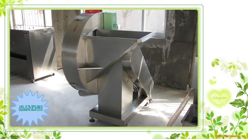 刨肉機利用切刀強勁旋轉,將凍肉切成不同厚度的肉片,凍肉在不解凍的前提下切成肉片,可省去凍肉解凍過程,提高工作效率。與冷凍肉絞肉機配套使用,加大了對肉糜絞肉機處理前工作效益,而且延長了絞肉機的使用壽命,是肉制品加工中不可缺少的設備。該機設計合理,機身重心平衡,突破傳統設計加寬機身大扭矩刨碎不搖晃,合理的刨盤設計加固條和特殊處理刀片長時間加工不疲勞崩裂等情況出現。