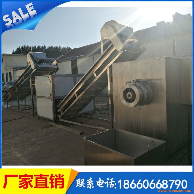 4、凍肉破碎機(jī)加工原料-4℃~-18℃的凍肉,可直接破碎成塊狀,是斬拌機(jī)和絞肉機(jī)的前道工序。