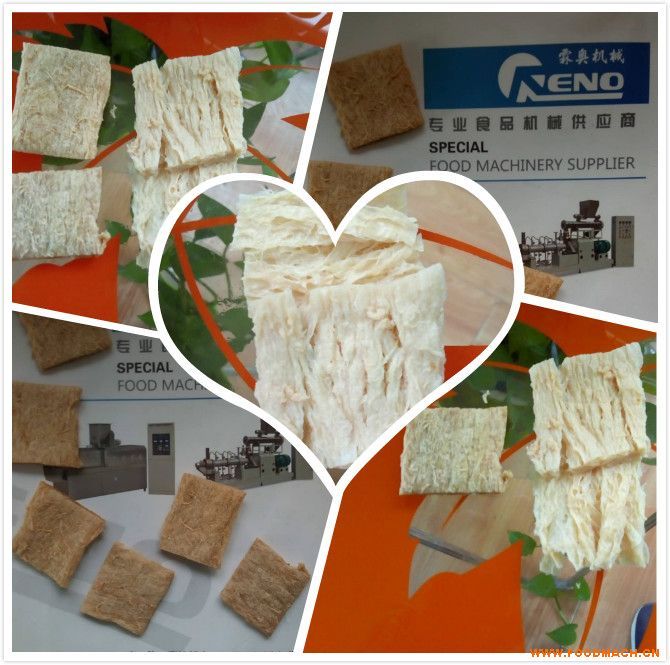 工藝上,該素肉大豆蛋白設(shè)備生產(chǎn)線以低脂低溫豆粕作為基本原材料,經(jīng)過擠壓膨化熟化成型之后,粉狀原材料中的淀粉組織變性糊化,從而更具有均化的效果,更容易被消化吸收。而且*終成品的顆粒組織結(jié)構(gòu)網(wǎng)狀絲狀片狀效果更佳,因此用該蛋白生產(chǎn)線加工出的*終素肉產(chǎn)品,具有營養(yǎng)成分高,可口有嚼勁,口感多樣易吸收的優(yōu)勢。