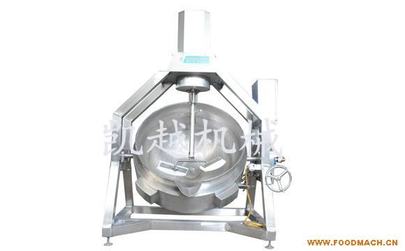 本產(chǎn)品鍋體為一次沖壓成型的半球形不銹鋼鍋體,采用蒸汽、液化氣、天然氣等加熱形式,攪拌方式采用特殊的傾斜式傳動,使用的行星式攪拌器與鍋體充分接觸,實(shí)現(xiàn)傳動公轉(zhuǎn)與自轉(zhuǎn)的不整數(shù)傳動比,使鍋內(nèi)無攪拌死角。使用先進(jìn)的傳動與密封結(jié)構(gòu),使傳動部分與鍋內(nèi)潔凈、衛(wèi)生。采用變頻調(diào)速動力,運(yùn)行更平穩(wěn)。另本機(jī)采用液壓升降,翻鍋運(yùn)料,免拆裝攪拌器節(jié)省人力,降低勞動強(qiáng)度,是性能優(yōu)良的食品加工設(shè)備。