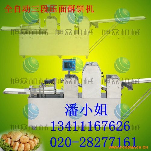 旭眾SZ-09C多功能三段酥餅機(jī) ,采用三段漸進(jìn)式打薄再將面皮壓成合適的厚度。由自動(dòng)出餡機(jī)將餡料充填至面皮上,經(jīng)卷面輪將面皮卷成圓柱狀,*后以成型刀具切割成球狀。長(zhǎng)條狀餅胚,整個(gè)成形過(guò)程不會(huì)破壞面皮筋性,完全保持手工原味。