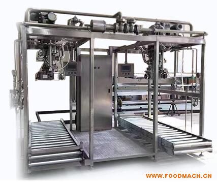 本設(shè)備主要由無菌灌裝系統(tǒng)、計(jì)量系統(tǒng)、輸送系統(tǒng)、控制系統(tǒng)、操作平臺等組成。包裝袋采用鋁塑復(fù)合無菌袋(1L-1000L)。使用蒸汽噴射方法對口袋和灌裝室進(jìn)行殺菌,確保灌裝室始終是處于無菌狀態(tài)的,無菌袋口殺菌、開啟、灌裝和封口都在無菌環(huán)境下完成。采用流量計(jì)量方式,在線稱重等方法滿足不同的灌裝容積精度要求。
