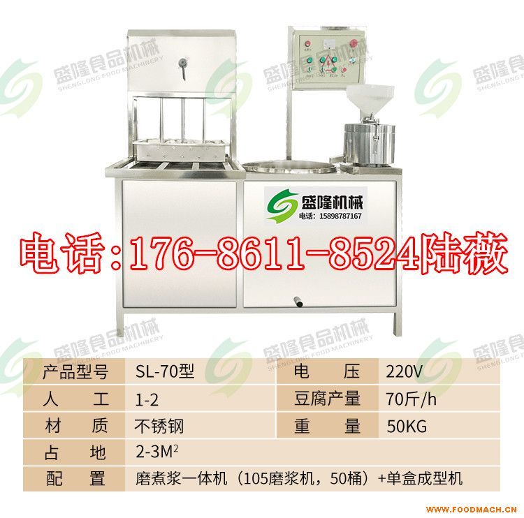 盛隆全自動豆腐機一般由磨漿機、煮漿機,壓榨機,三部份組成。