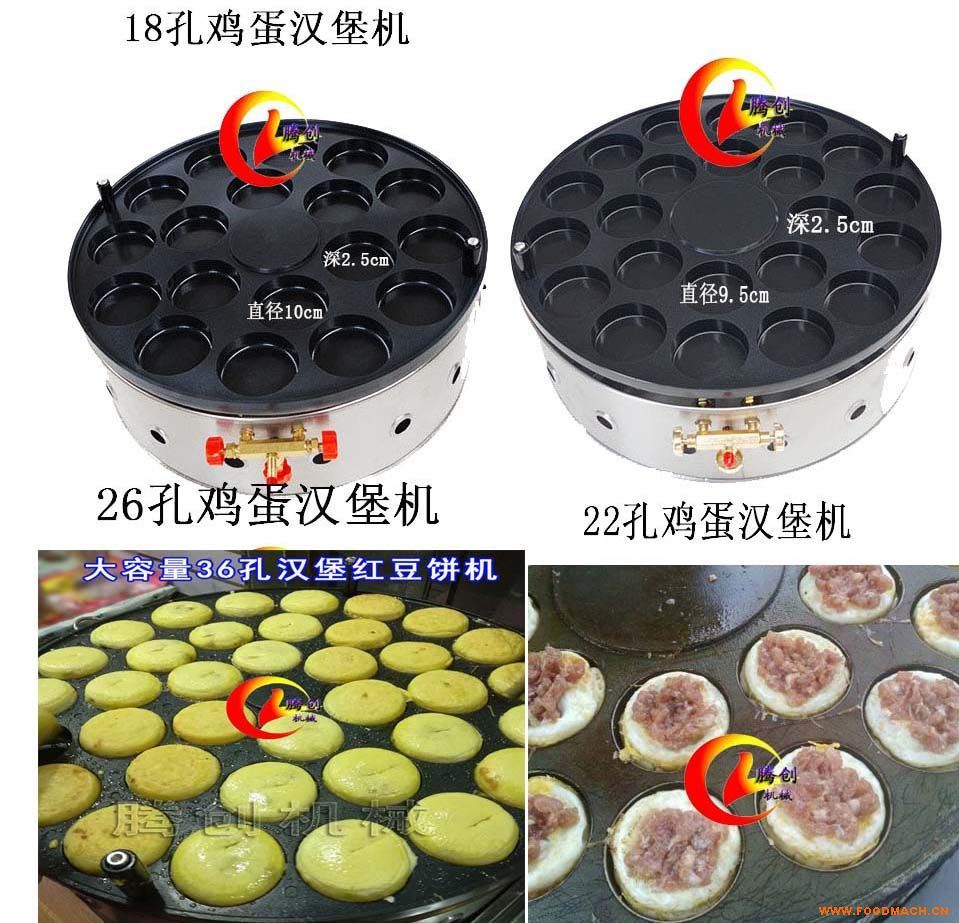 機(jī)器型號(hào)有18孔、22孔、26孔、32孔,特價(jià)780元包括機(jī)器、技術(shù)配方及配套料斗等工具。現(xiàn)在購(gòu)機(jī)就送制作雞蛋漢堡、紅豆餅的技術(shù)和工具套餐啦: