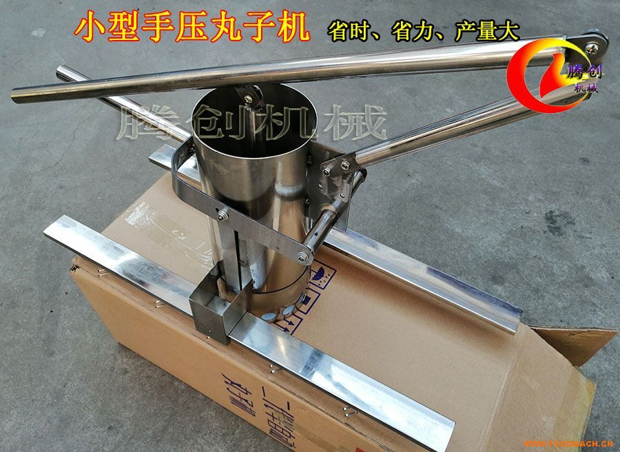 丸子機料筒直徑133mm,高300mm,桶壁加厚1mm,能裝10斤左右餡料,整機堅固耐用沒有易損件,操作簡單又方便,不用插電、不用液化氣,輕輕手壓幾下就能輕松做丸子,是小本創(chuàng)業(yè)商用炸丸子的好幫手,堪稱做丸子的神器。丸子成型的孔直徑有19毫米、25毫米(實際壓出丸子的尺寸會大上1-2mm),根據(jù)您的需求選擇,購機就免費贈送炸丸子技術配方!