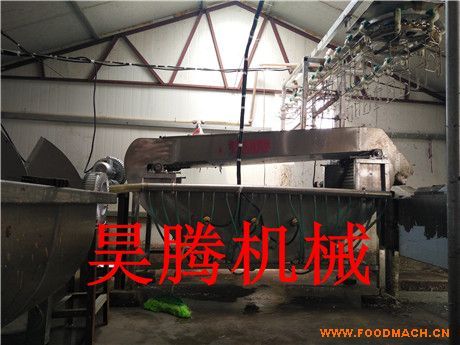 全自動(dòng)鴿子宰殺設(shè)備是我廠研制開發(fā)的新型產(chǎn)品,主要用于雞鴨鴿子等帶羽毛禽類的羽毛浸燙。船式浸燙池不需要用戶按標(biāo)準(zhǔn)程序?qū)⑶蓊惖鯍煸讱。它是人工將禽類殺死后隨即直接扔入浸燙池中,不間斷的無次序的向設(shè)備內(nèi)投入就可以了。