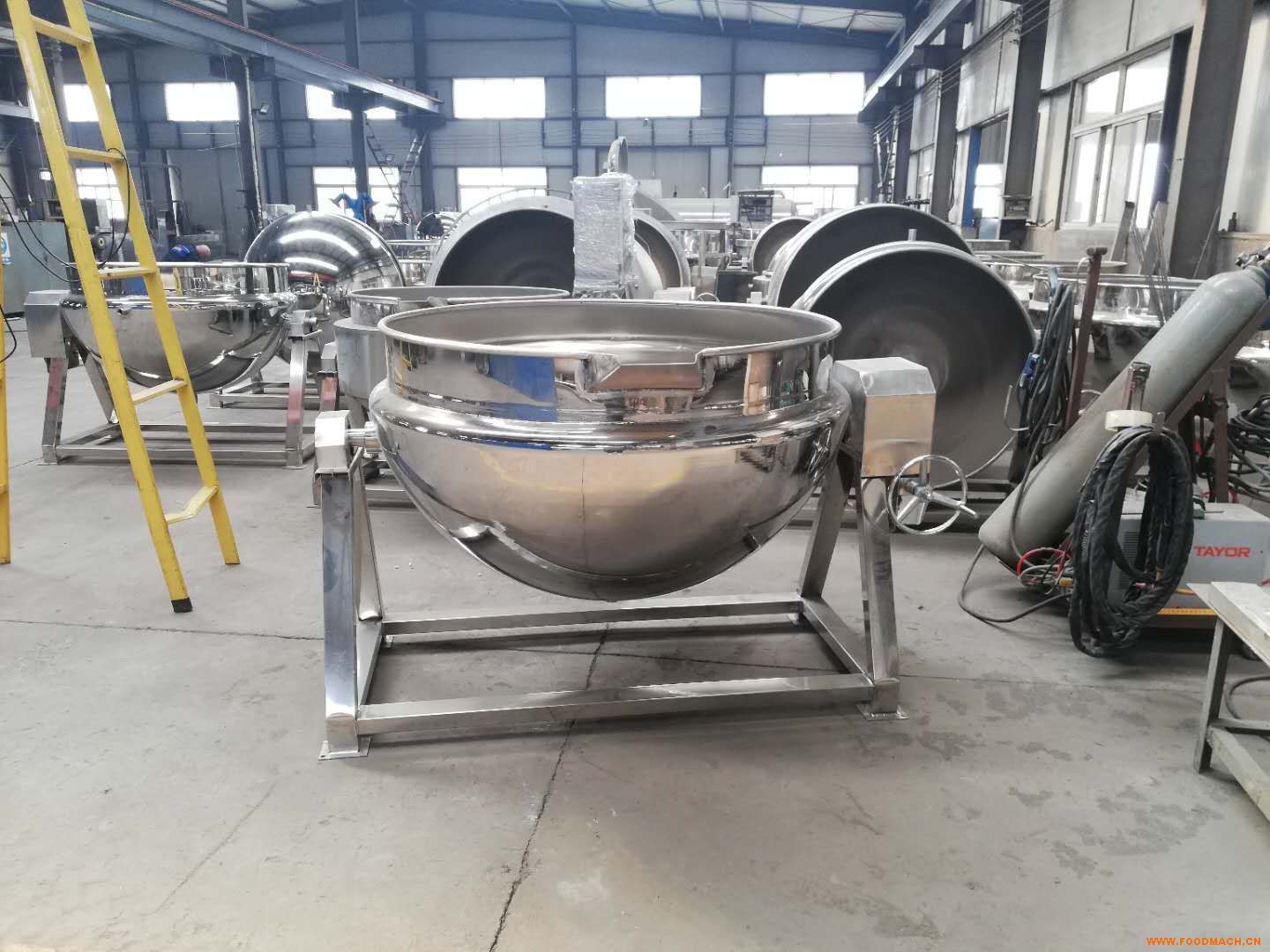 泡椒雞爪夾層鍋 鴨頭鴨脖鹵煮鍋主要由鍋體、架體、攪拌系統(tǒng)、加熱系統(tǒng)、調(diào)速傳動裝置、攪拌軸、鍋體翻轉(zhuǎn)系統(tǒng)等組成,