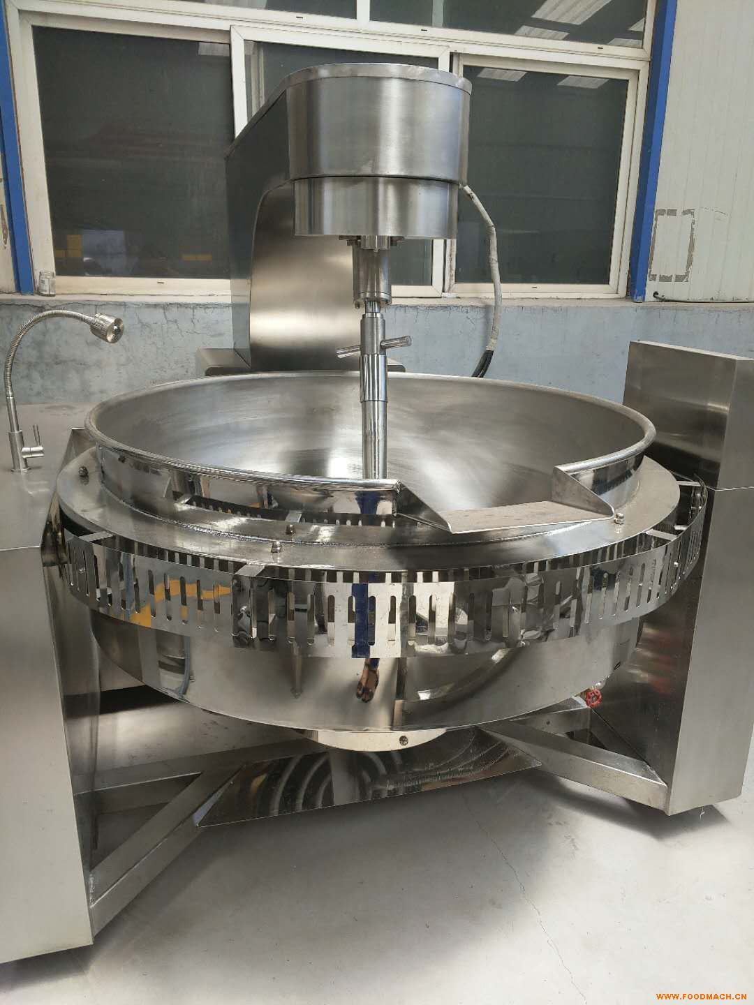 辣椒醬專(zhuān)用炒鍋 多功能醬料炒鍋攪拌方式:攪拌器轉(zhuǎn)速變頻調(diào)節(jié),在0-26rpm內(nèi)實(shí)現(xiàn)無(wú)級(jí)調(diào)速,刮板獨(dú)特采用公轉(zhuǎn)加自轉(zhuǎn)的方式,攪拌器和刮板結(jié)構(gòu)設(shè)計(jì)獨(dú)特,物料攪拌混合更均勻,刮底更徹底,不容易產(chǎn)生糊鍋現(xiàn)象。主要應(yīng)用于:火鍋底料、月餅餡料、高粘度物料、果醬、年糕、辣椒醬、食堂、阿膠、熬湯、豆蓉、豆沙、芝麻醬、五谷豆?jié){、方便面醬料、香菇醬出鍋方式:整鍋通過(guò)蝸輪、蝸桿手動(dòng)翻鍋出料,安全、穩(wěn)定、可靠。行星攪拌炒鍋可電加熱、燃?xì)饧訜、蒸汽加熱、電磁加熱等方式。由不銹鋼制作,攪拌徹底、無(wú)死角、攪拌均均、不易糊鍋。整體采用SUS304不銹鋼材質(zhì),鍋體是自動(dòng)可傾倒料的,炒制進(jìn)行中過(guò)著炒制結(jié)束之后,可以自動(dòng)的把物料倒出來(lái),不需要人工操作。整體而言,炒鍋的性價(jià)比是非常高的,適合于炒菜,熬糖,炒醬等一系列需要翻炒或者粘稠度比較大的產(chǎn)品。設(shè)計(jì)更加的人性化,不管是在翻炒物料還是可傾倒料上都是全自動(dòng)設(shè)計(jì)的。設(shè)備操作簡(jiǎn)單,辣椒醬專(zhuān)用炒鍋方便,使用安全可靠。完善的售后服務(wù)讓您更加的放心。采用的攪拌方式為行星攪拌方式,什么是行星攪拌方式呢?所謂行星攪拌方式就是根據(jù)行星運(yùn)行的規(guī)律,自傳與公轉(zhuǎn)相結(jié)合,保證完全刮底,這一點(diǎn)能有有效的避免粘鍋和糊鍋,使物料翻炒更均勻。攪拌方式非常有特點(diǎn),可以用來(lái)攪拌的物料種類(lèi)也是非常豐富,廣泛應(yīng)用于火鍋底料、各種醬料、食品餡料、中央廚房等場(chǎng)所中各種物料的攪拌,而且攪拌效果非常好。行星攪拌炒鍋內(nèi)部的攪拌爪不是球形的,而是圍繞中心軸底部分開(kāi)的兩個(gè)或者多個(gè)攪拌爪,首先攪拌軸上的攪拌爪是不斷旋轉(zhuǎn)的,屬于自轉(zhuǎn),這個(gè)是固定旋轉(zhuǎn)的,但是攪拌軸是有傾斜度的,攪拌軸本身會(huì)旋轉(zhuǎn),所以攪拌軸旋轉(zhuǎn)的同時(shí),攪拌軸上的多爪攪拌刮板也會(huì)同時(shí)自轉(zhuǎn),就構(gòu)成了一種行星方式旋轉(zhuǎn)。