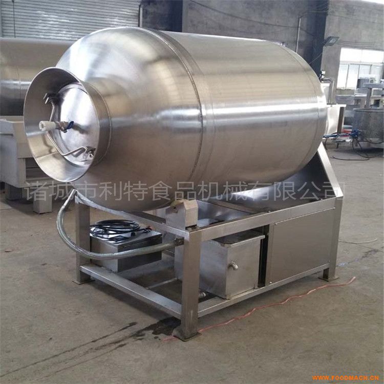 1000型真空滾揉機(jī)通?梢院望}水注射機(jī)搭配把肉淹透,經(jīng)過鹽水注射的肉或預(yù)腌過的肉塊放在滾揉機(jī)里,在真空狀況下利用物理沖擊的原理讓肉在滾筒里上下翻動(dòng),相互撞擊、摔打、達(dá)到揉搓、腌漬的作用,令肉均勻的吸收腌漬,提高產(chǎn)品彈性及出品率,用戶可定制滾揉機(jī)自動(dòng)滾揉,間歇,出氣,抽空等功能,使該設(shè)備實(shí)現(xiàn)了自動(dòng)呼吸功能。